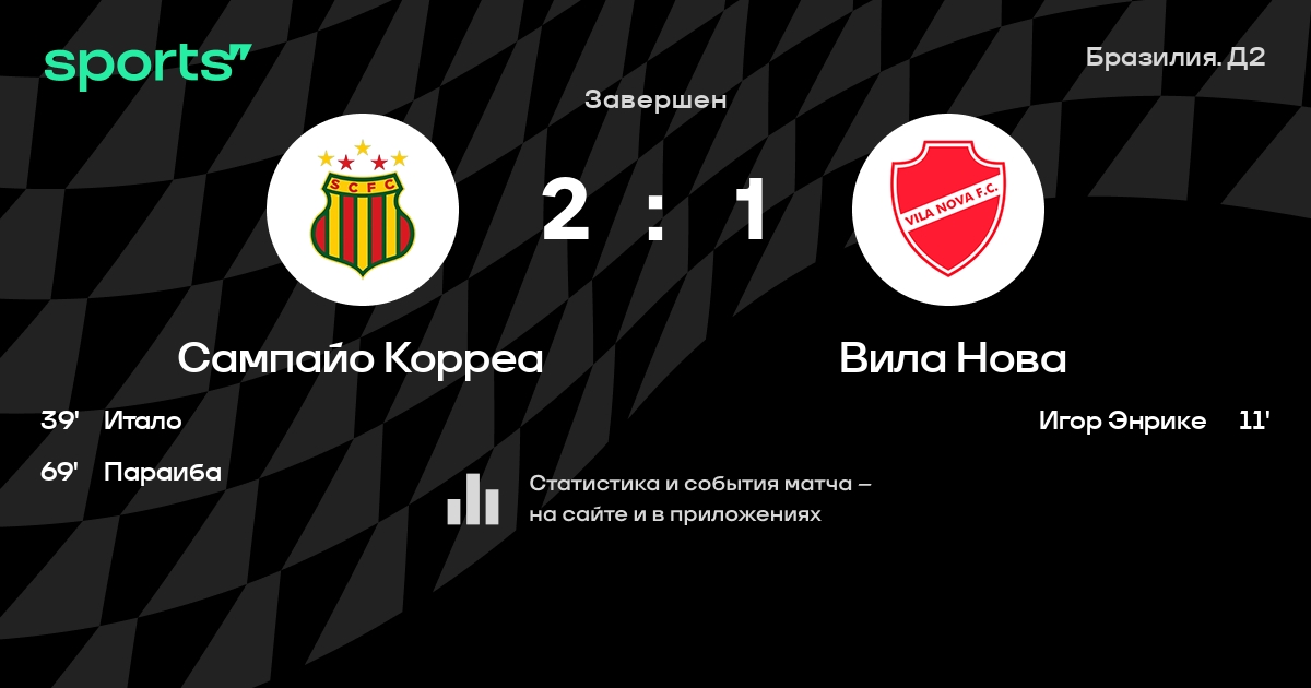 Сампайо Корреа – Вила Нова: Сампайо Корреа не проигрывает в 5 из 7 последних матчей против этого соперника