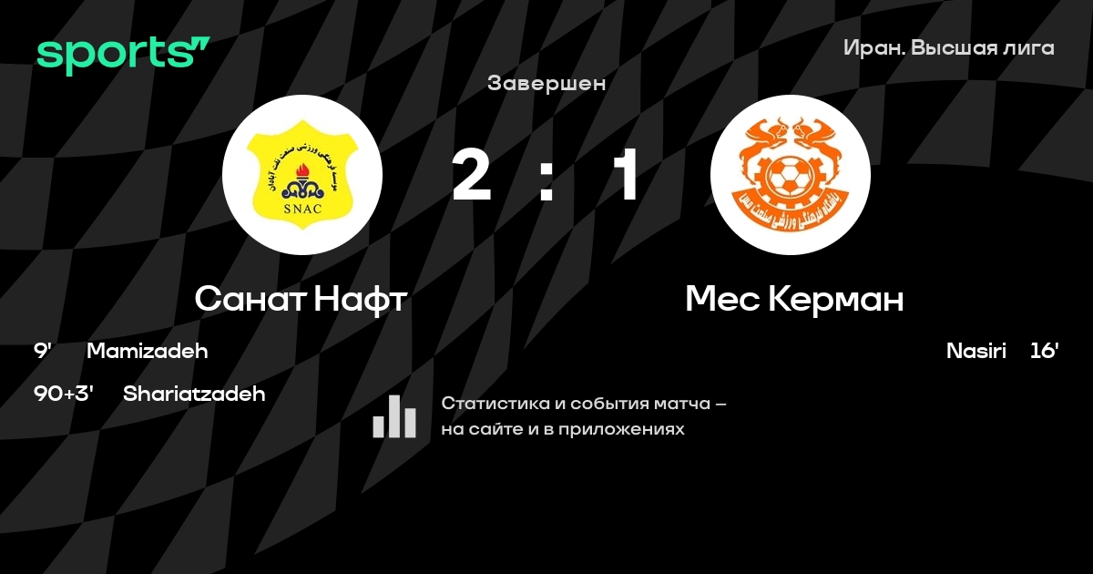 Санат Нафт – Мес Керман: Мес Керман не проигрывает в 5 из 7 последних матчей против этого соперника