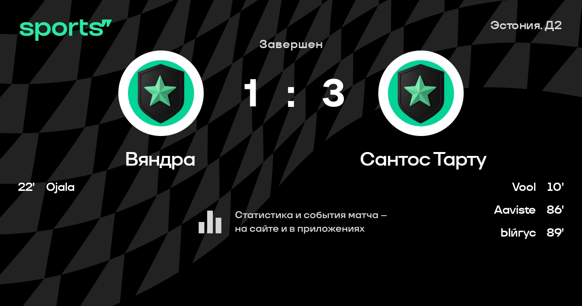 Вяндра - Сантос Тарту: статистика матча