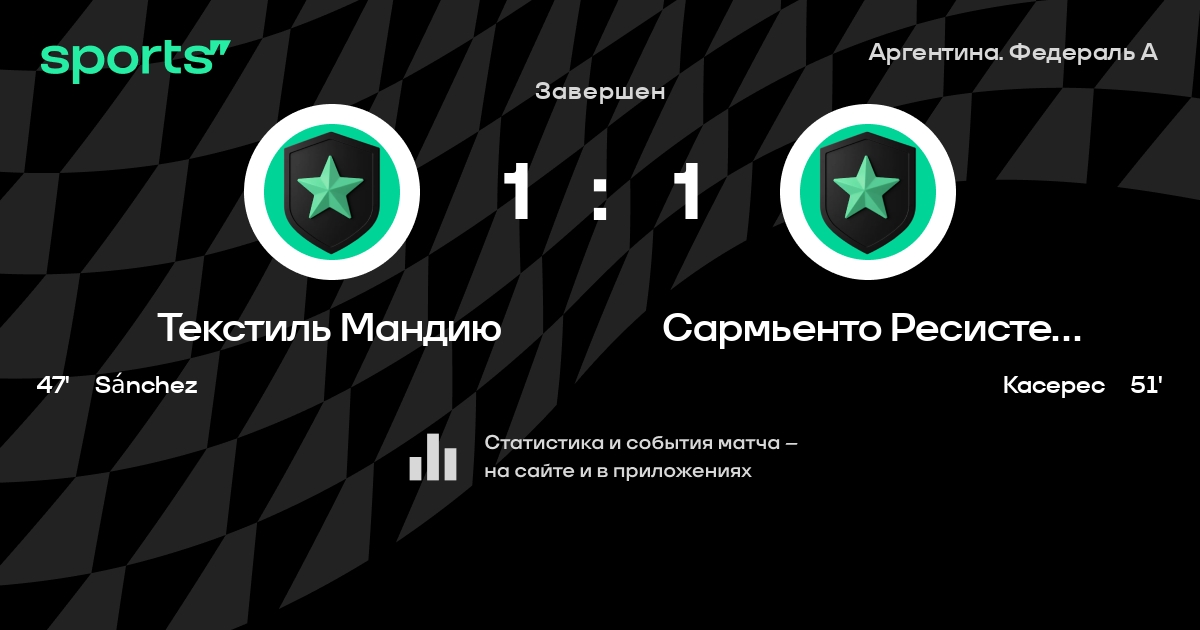 Трансляция Текстиль Мандию - Сармьенто Ресистенсия