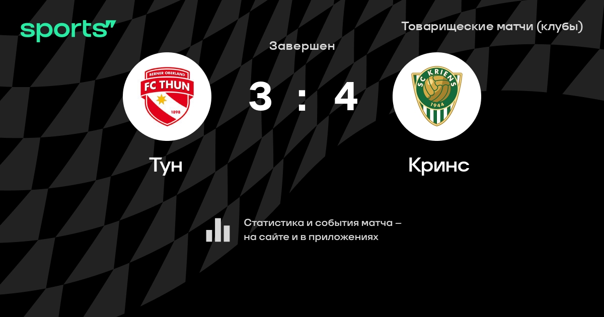 Тун – Кринс: Кринс побеждает в 4 последних очных матчах в турнире «Товарищеские матчи (клубы)»