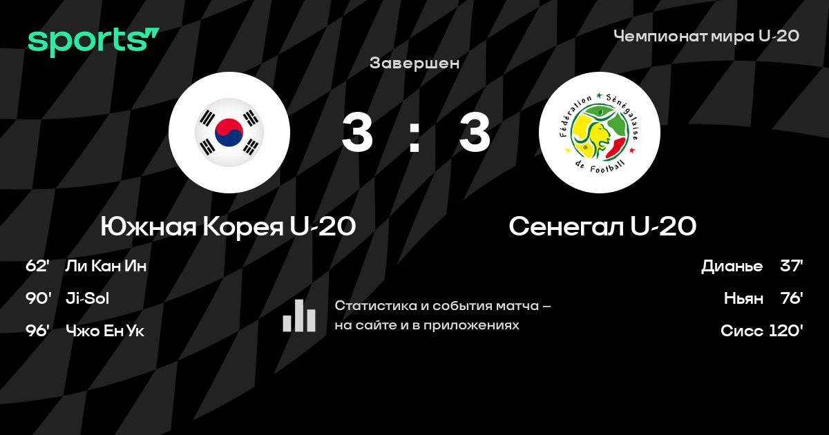 Южная Корея U-20 – Сенегал U-20: коэффициенты