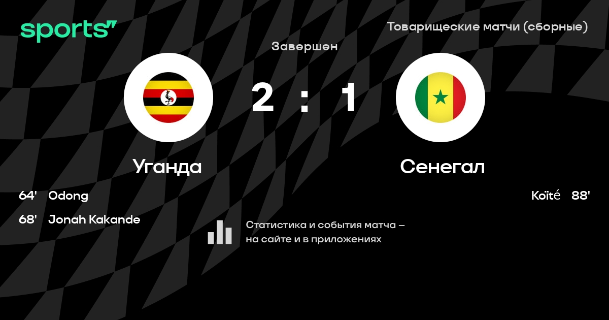 Результат прошлой игры в турнире «Товарищеские матчи (сборные)»: Танзания – Уганда 1:0. Уганда не может выиграть в 5 последних матчах в рамках турнира «Товарищеские матчи (сборные)». Уганда пропускает в 5 последних матчах в турнире «Товарищеские матчи (сборные)». В последних 5 играх Уганда забивает 3 голов. В последних 5 играх Уганда пропускает 8 голов.