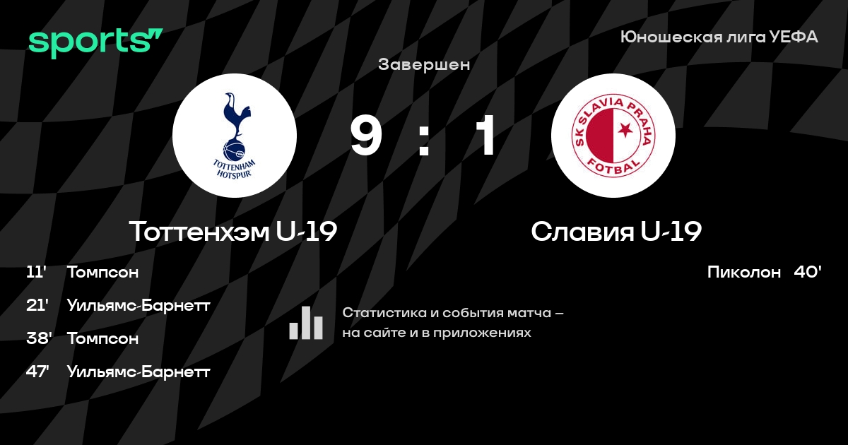 Трансляция Тоттенхэм U-19 - Славия U-19