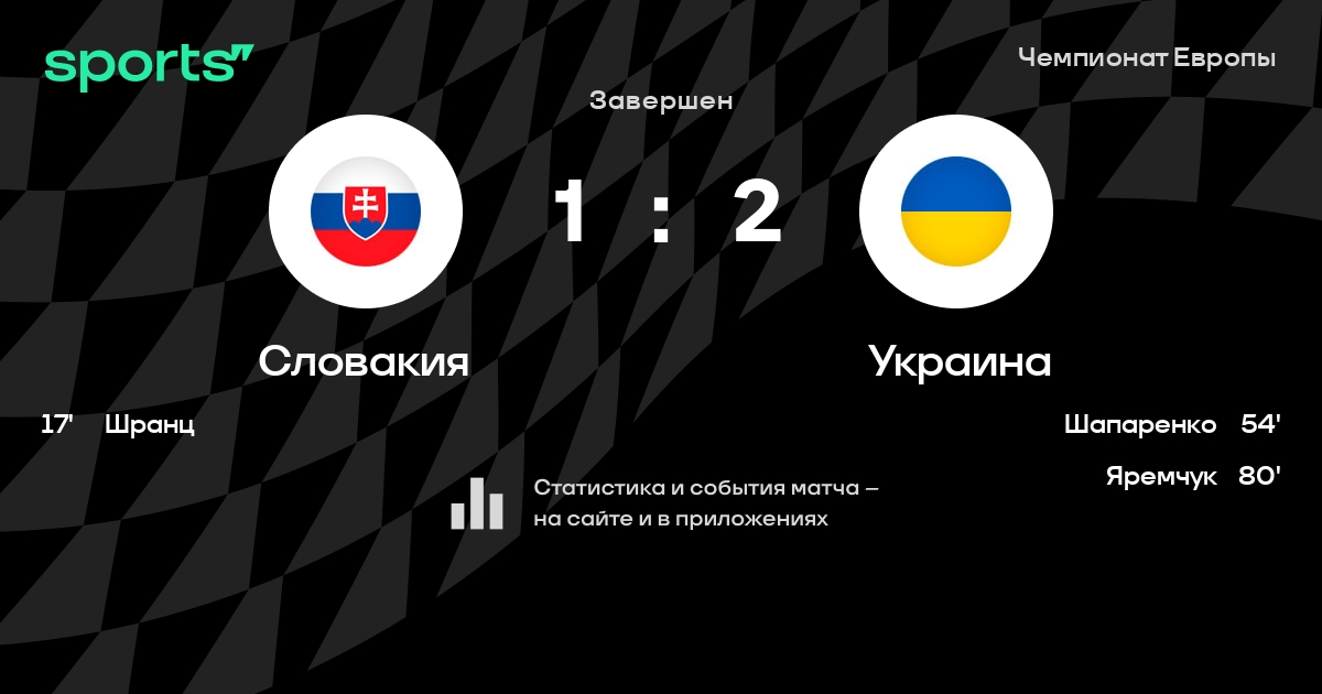 Словакия – Украина: голы в первом тайме и тотал желтых карточек