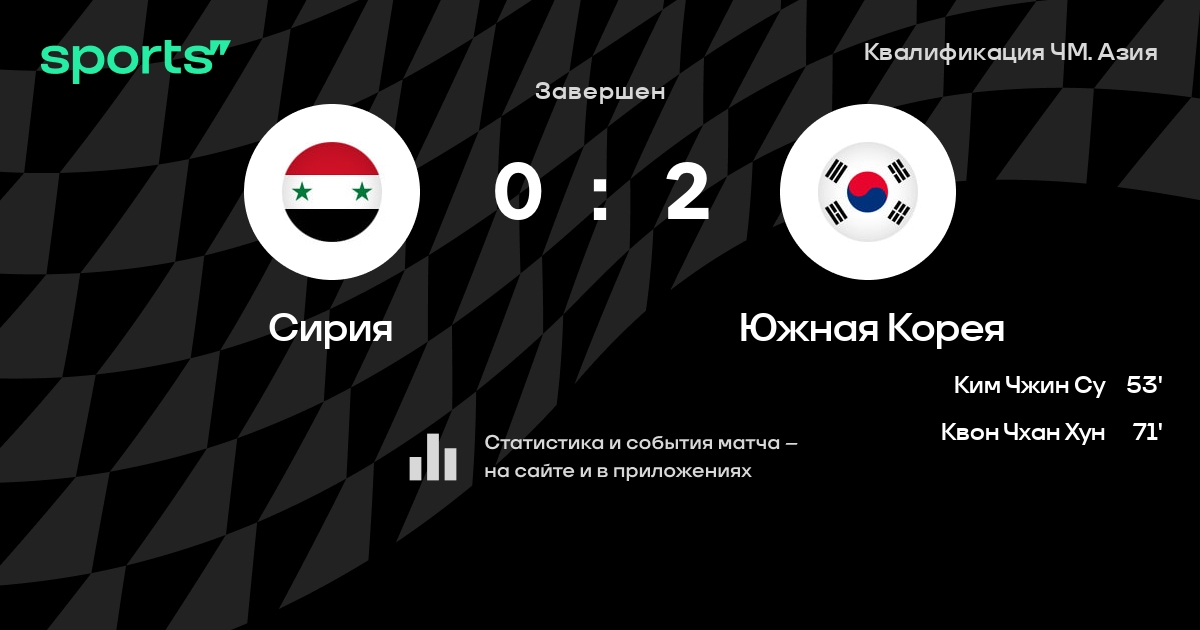 Сирия – Южная Корея: Южная Корея не проигрывает в 7 последних матчах против этого соперника