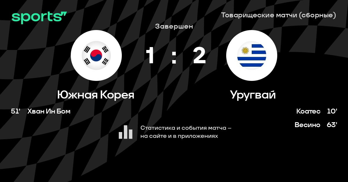 Южная Корея – Уругвай: Уругвай не проигрывает в 5 из 6 последних матчей против этого соперника