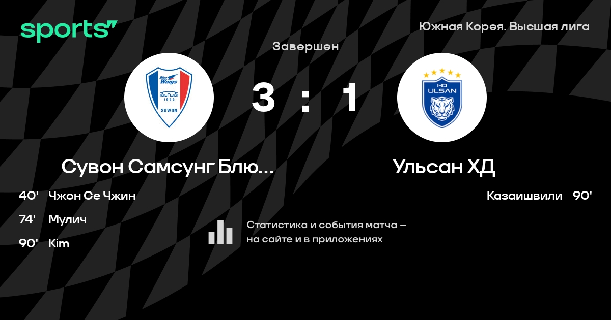 1 | Ульсан ХД | 38 | 23 | 7 | 8 | 63 | 42 | +21 | 76 | ||