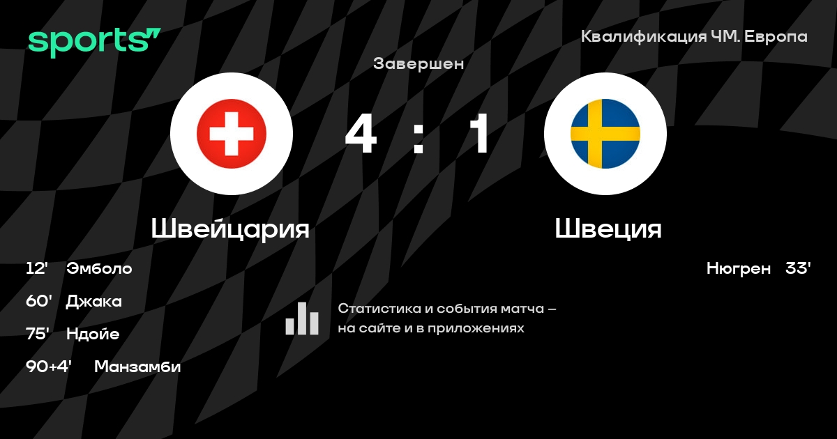Квалификация ЧМ: шансы Швейцария – Швеция победу в отборочном мате чемпионата мира 2026