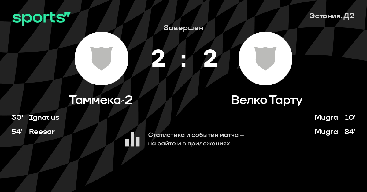 Таммека-2 – Велко Тарту: коэффициенты