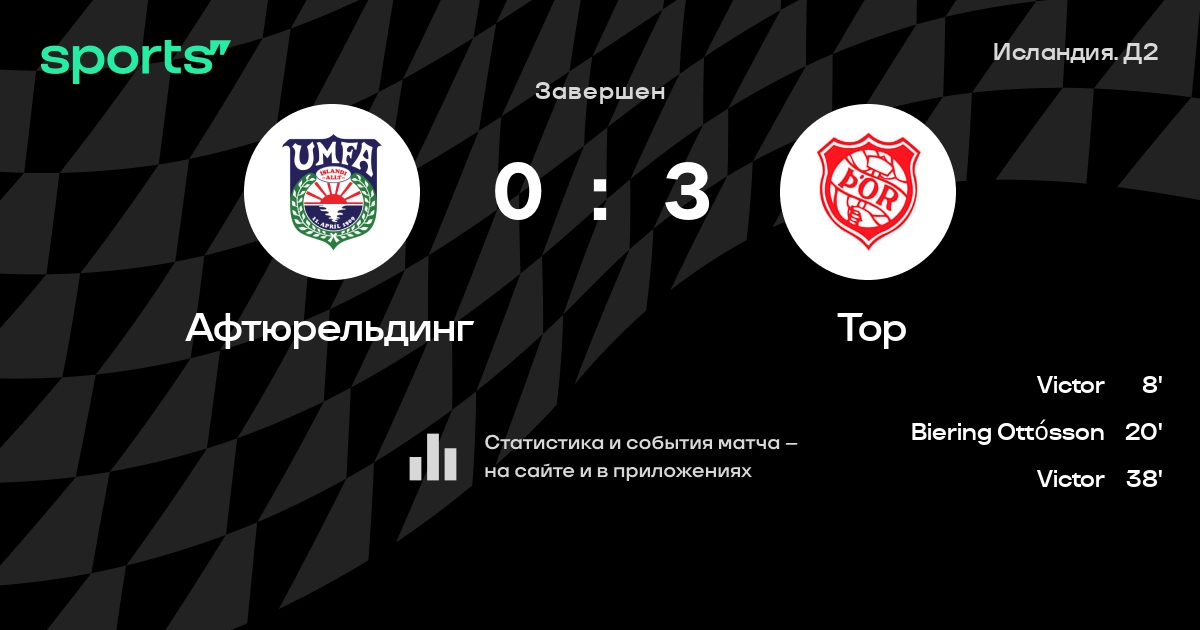 Valtýsson - Hlynsson, Jonsson, Vilhelm Ottó Biering Ottósson, Ragnar Óli Ragnarsson - Хеймиссон, Aron Ingi Magnússon, Рочестер Соренсен - Árnason, Romão Victor, Malmquist GíslasonЗапасные: Stefansson, Viðarsson, Kristjánsson, Hjaltason, Ingason, Gunnarsson, Halldórsson