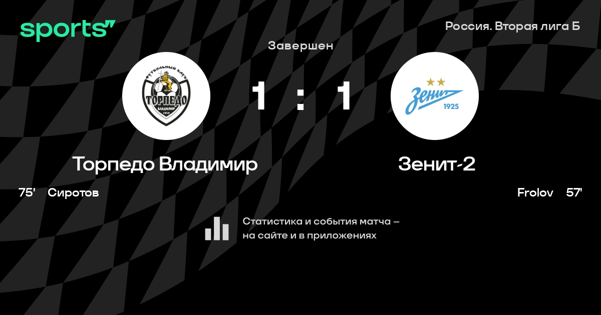 Торпедо Владимир - Зенит-2: положение в турнире