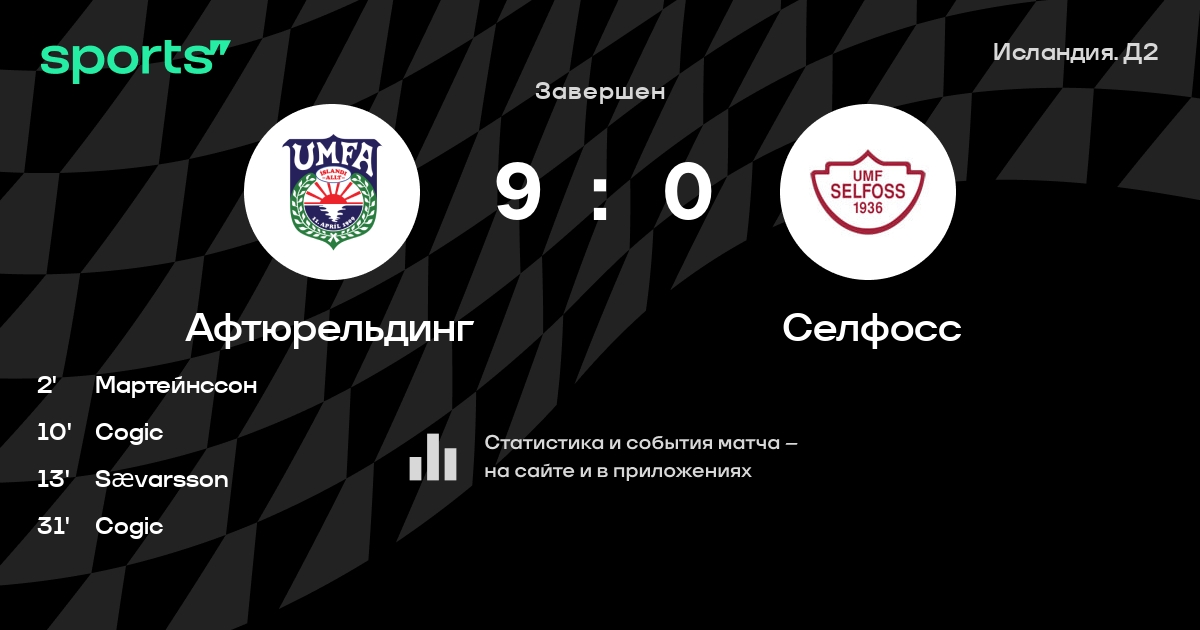 Афтюрельдинг – Селфосс: коэффициенты