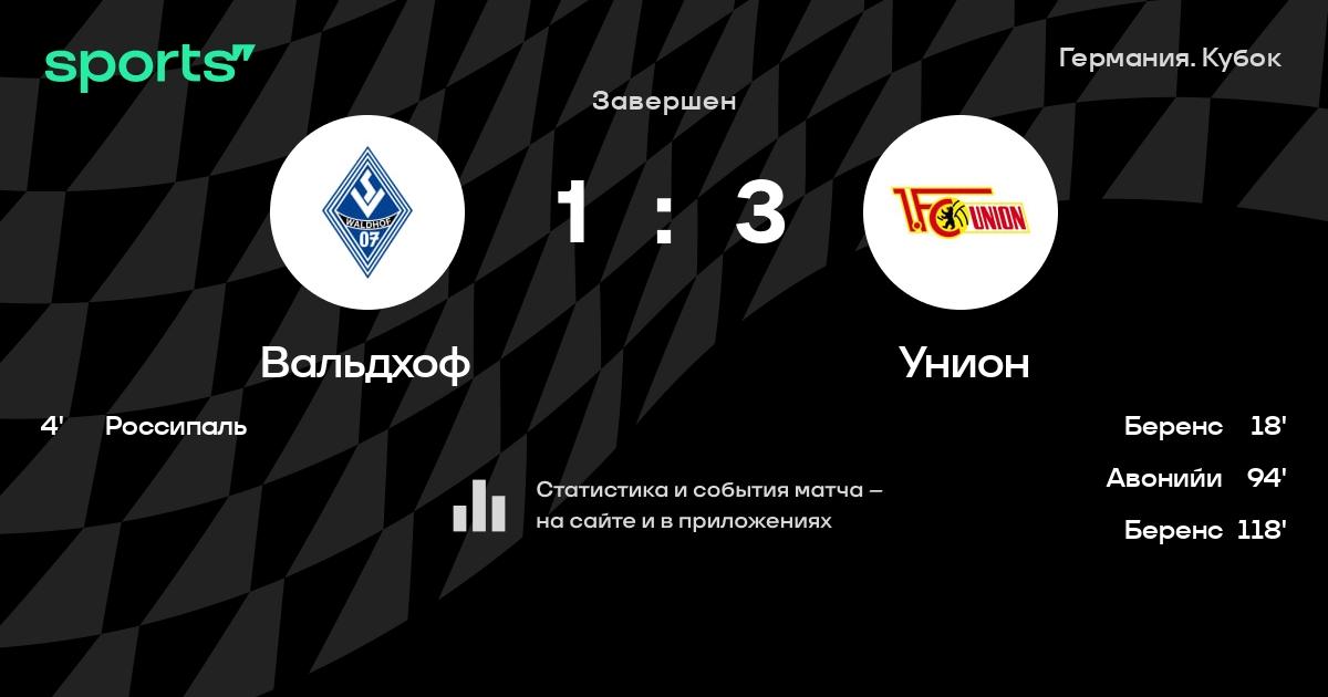 Вальдхоф – Унион Берлин: Унион Берлин забивает в 4 последних матчах против этого соперника