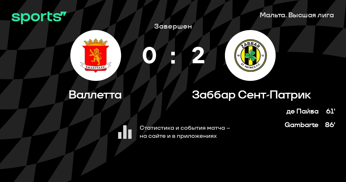 Валлетта – Заббар Сент-Патрик: Валлетта забивает в 8 последних матчах против этого соперника