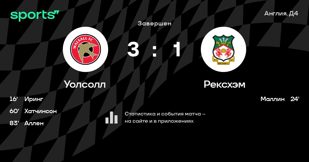 Уолсолл – Рексхэм: Уолсолл забивает в 12 последних матчах против этого соперника