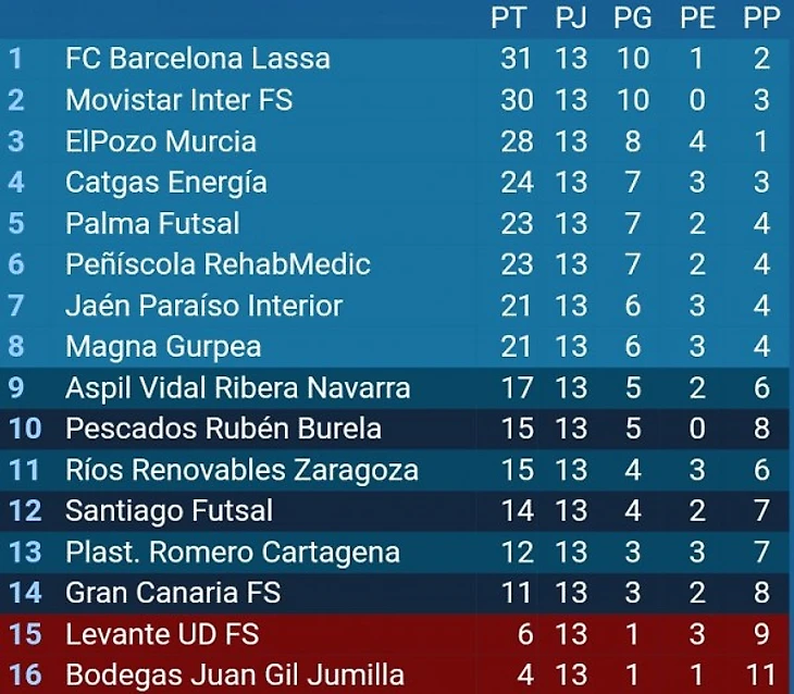 Последний тур уходящего года. Обзор 13-ого тура Примеры испанской Liga Nacional de Fútbol Sala