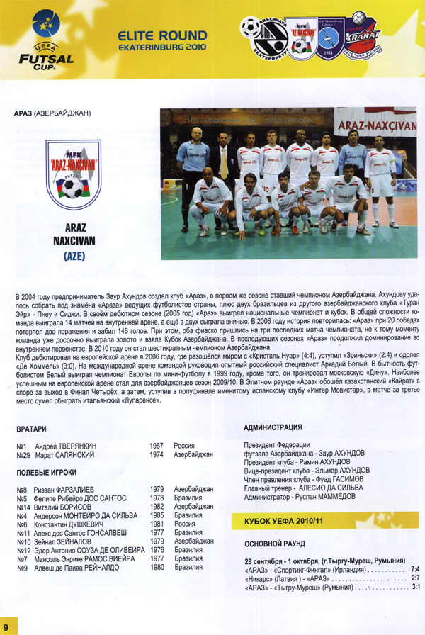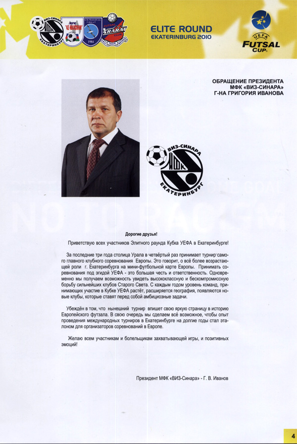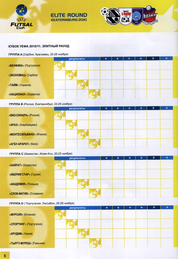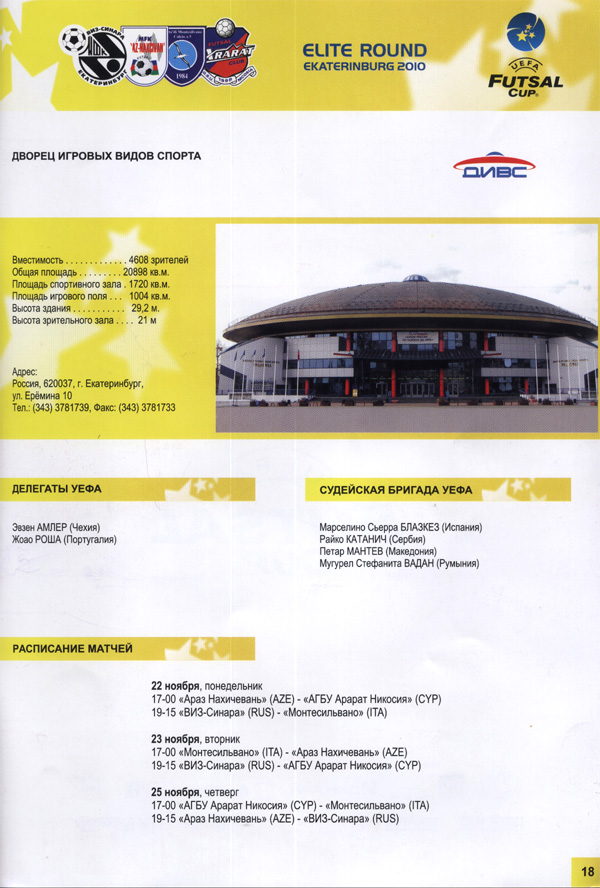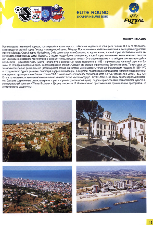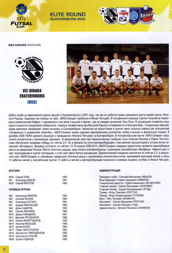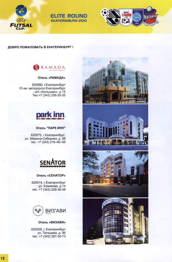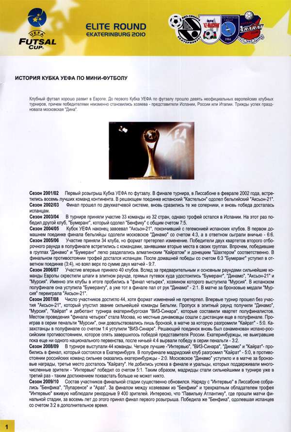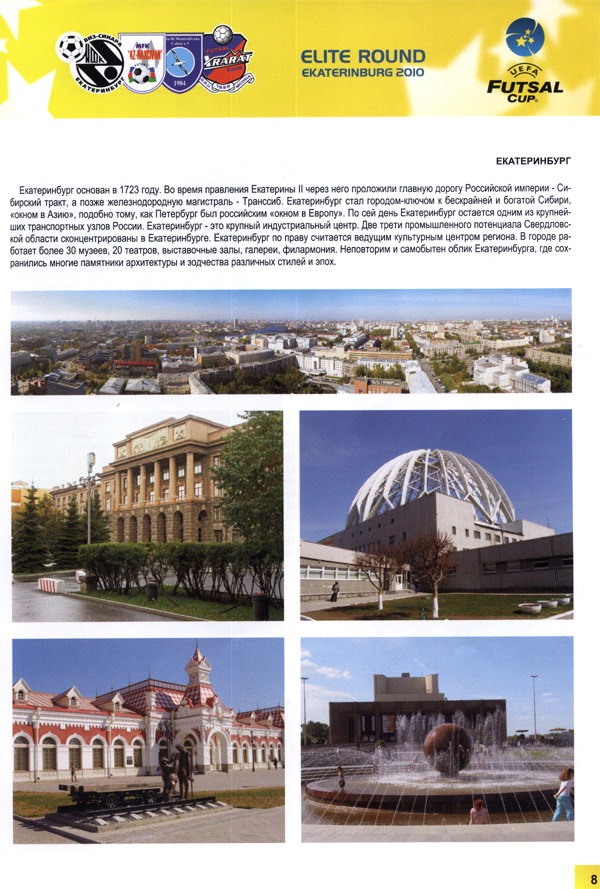 В широкие сети нашего блога попал интереснейший буклет, посвященный Элитному раунду Кубка УЕФА в Екатеринбурге. В нем содержится представление участников соревнования, а также информация об их родных городах. Ну и еще кое-что интересное. Все это было собрано в одном месте пресс-службой МФК ВИЗ-Синара.