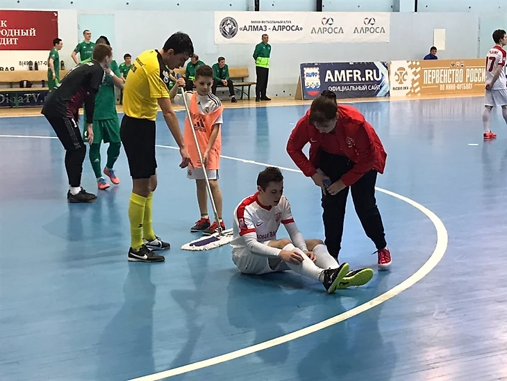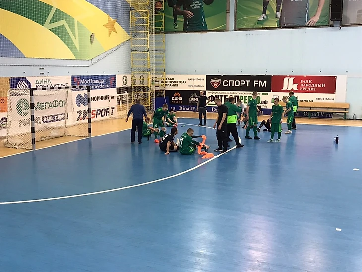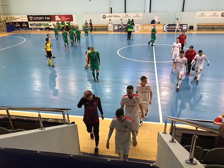За пять минут до окончания второго тайма Вадим Цай установил окончательный счет на табло, забив седьмой мяч «Алмаза» в этом матче. После голы прекратились, но звуки ударов по ногам и падающих игроков на паркет все еще имели место быть.