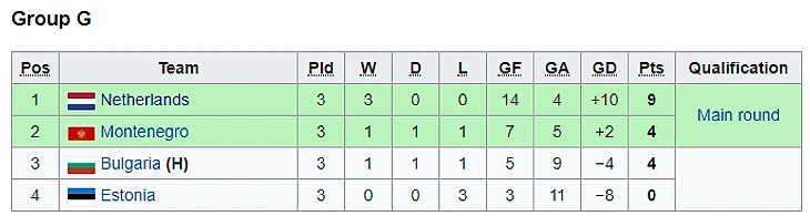 Крайне непростая группа, ведь Нидерланды просто шикарная сборная для первого этапа. Поэтому основная интрига заключалась в соперничестве вроде как ещё недавно неплохих болгар и очередной экс-югославской страны: борьба была равна, а решило всё разгромное поражения хозяев 1-6 от лидера группы.