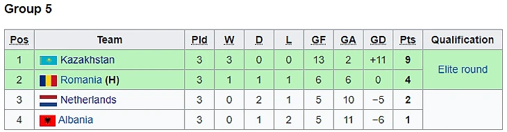 Судьба Казахстана и Албании изначально казалась понятной. Основная борьба должна была развернуться между Румынией и Нидерландами. Тяжкий разгром от казахов заставил Нидерланды играть с албанцами на крупную победу, но вместо этого они сделали ничью и похоронили собственные шансы на выход.