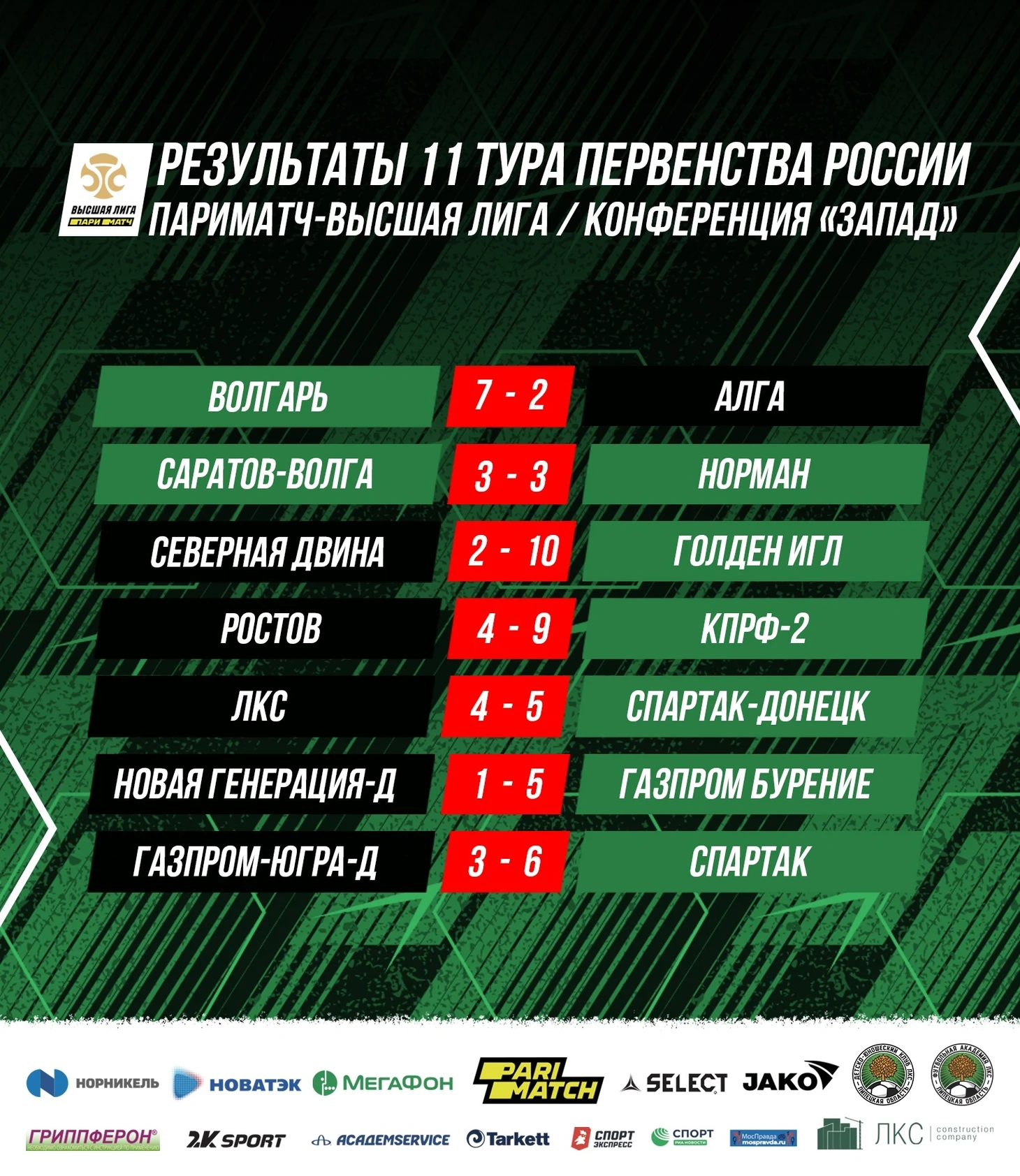 Результаты матчей 11 тура: