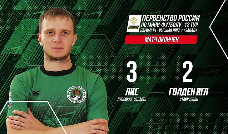 В Липецке развернулась борьба за 3-е место в турнирной таблице. В центральном матче 12-го тура Париматч – Высшей лиги мини-футбольный клуб ЛКС принимал «Голден Игл» из Ставрополя.