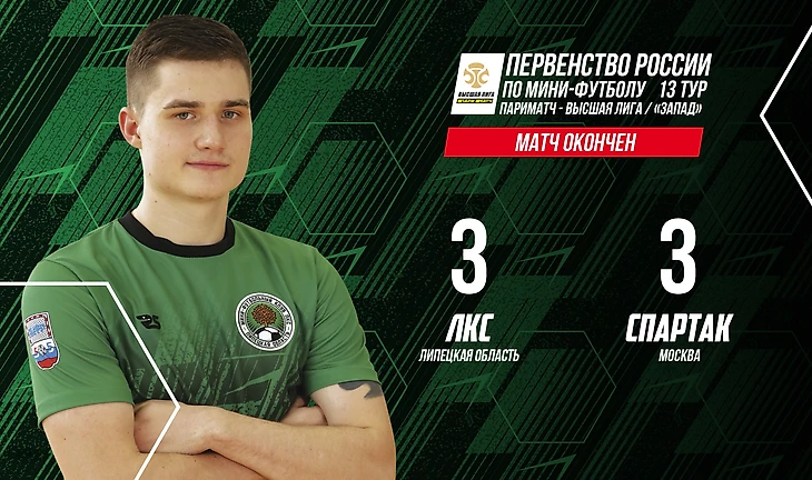 МФК ЛКС (Липецкая область) – МФК "Спартак" (Москва) – 3:3 (3:1).