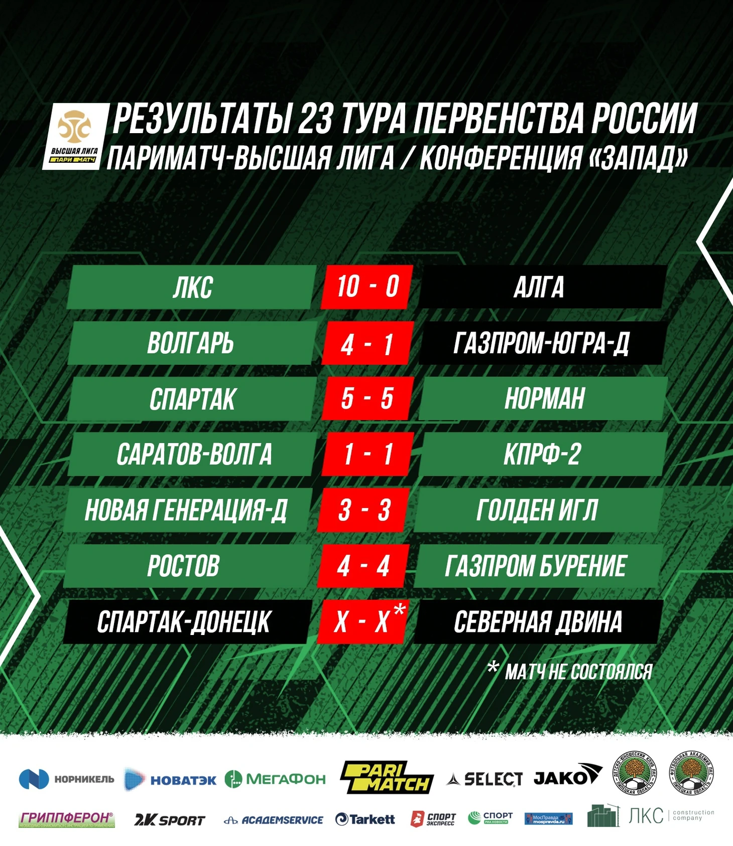 Результаты и обзоры матчей 23 тура Париматч - Высшей лиги Первенства России по мини-футболу среди мужских команд, конференция «Запад», сезон 2020/21