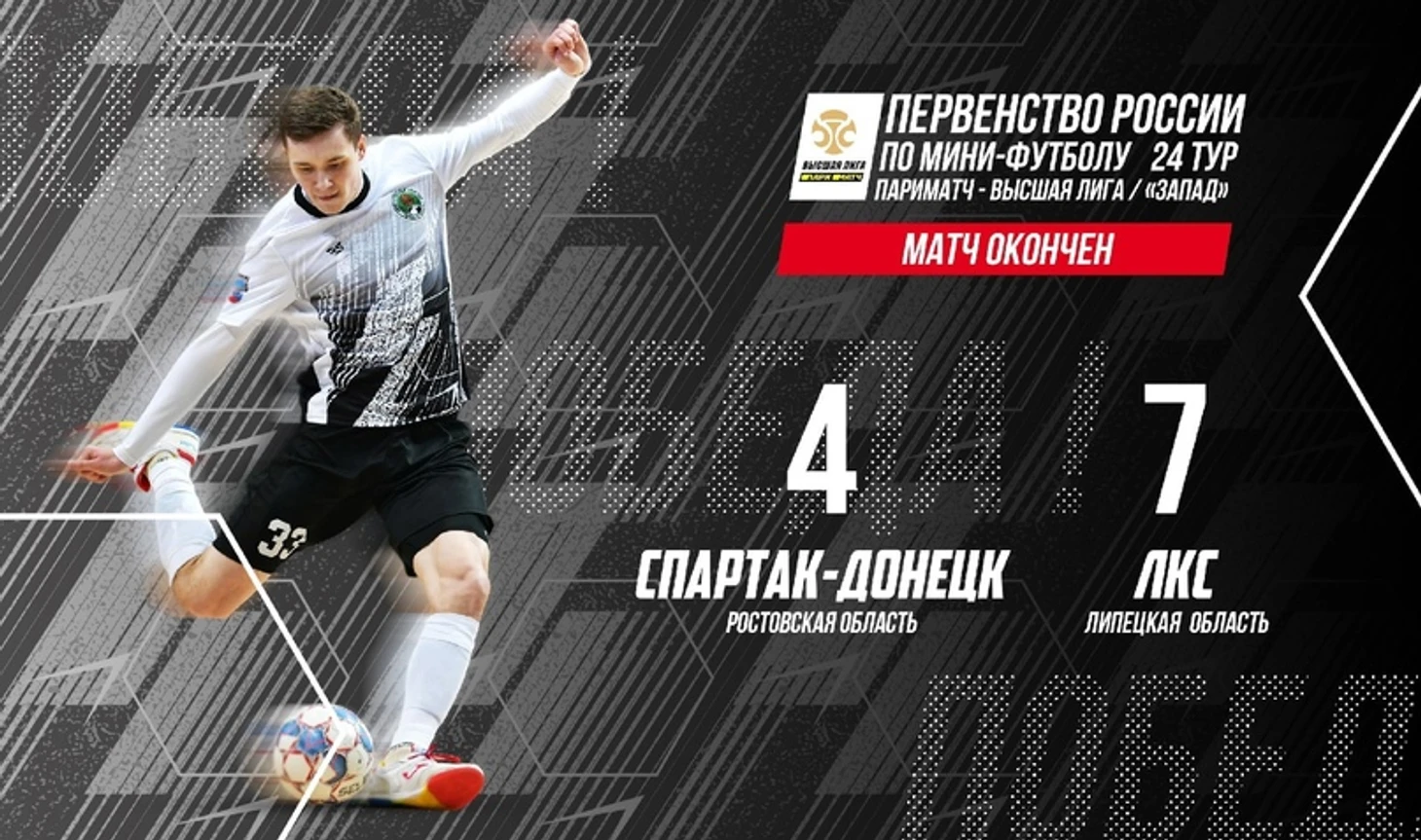 В 24-м туре Париматч – Высшей лиги Первенства России по мини-футболу встречались лидеры турнира – «Спартак-Донецк» принимал в Таганроге липецкий ЛКС. Перед очным поединком команды располагались на 2-м и 3-м местах. Однако, если липчане в предыдущем туре разгромили СК «АЛГА» (10:0), то команда из Ростовской области получила 3 очка, не выходя на площадку – «Северная Двина» не явилась на матч и получила техническое поражение, а «Спартак-Донецк» продлил свою беспроигрышную серию до 21 матча.