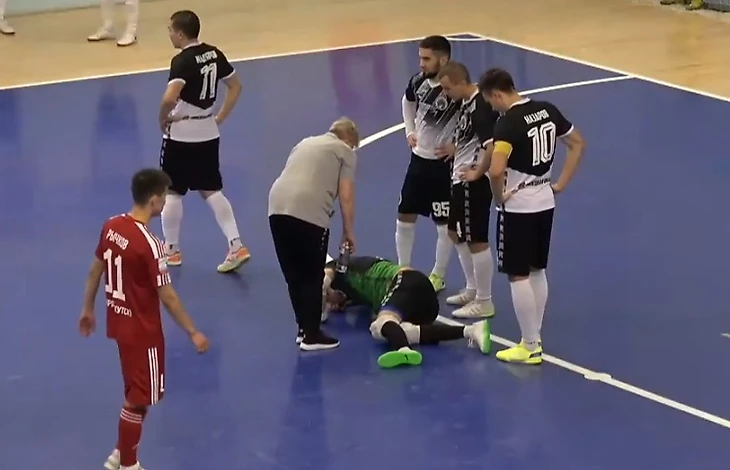 А на 13-й минуте Агедиль Мадияров сфолил у своей штрафной, и игрок «Зари», падая, врезался в самоотверженно сыгравшего Евтушенко. Голкипер липчан смог покинуть паркет только с помощью партнёров, а место в воротах занял Леон Геджуа.