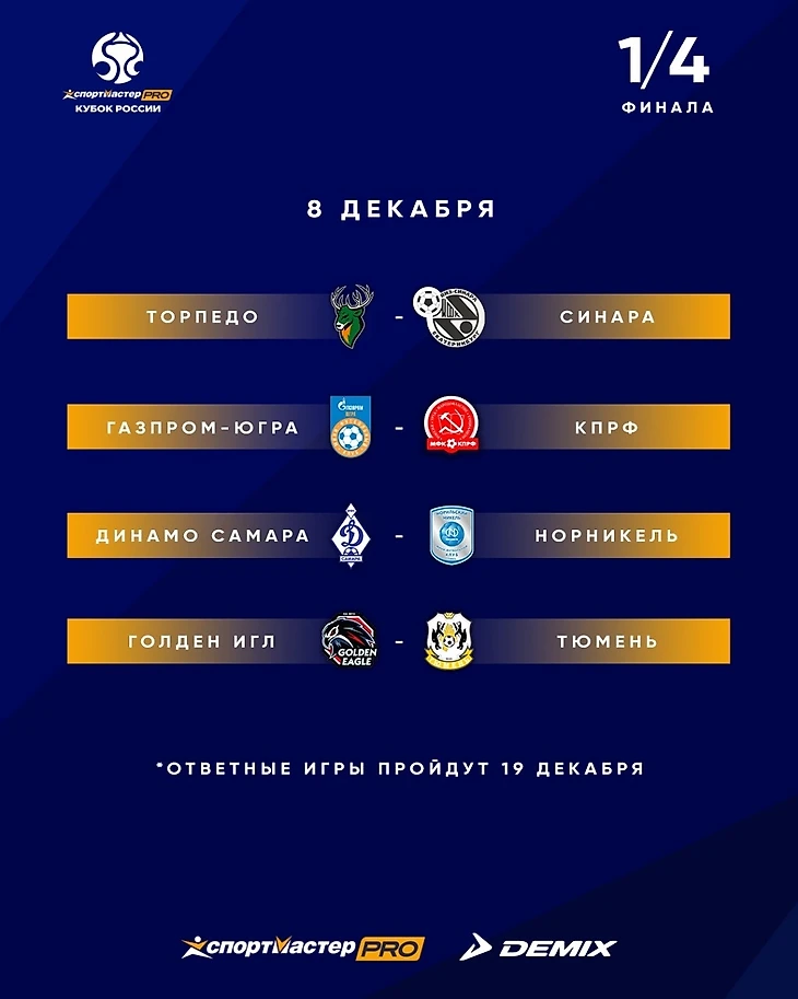 11 ноября стал известен полный состав участников 1/4 финала СпортмастерPRO-Кубка России по мини-футболу.