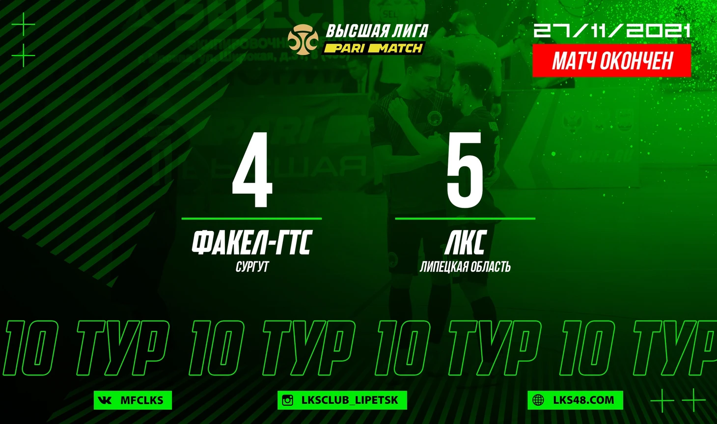 Мини-футбольный клуб ЛКС в 10-м туре Париматч-Высшей лиги встречался в Сургуте с МФК «Факел-ГТС». После домашней победы в предыдущем туре липчанам требовалось закрепить победный настрой. Сургутяне же, не выигрывавшие больше месяца, старались реабилитироваться перед своими болельщиками.