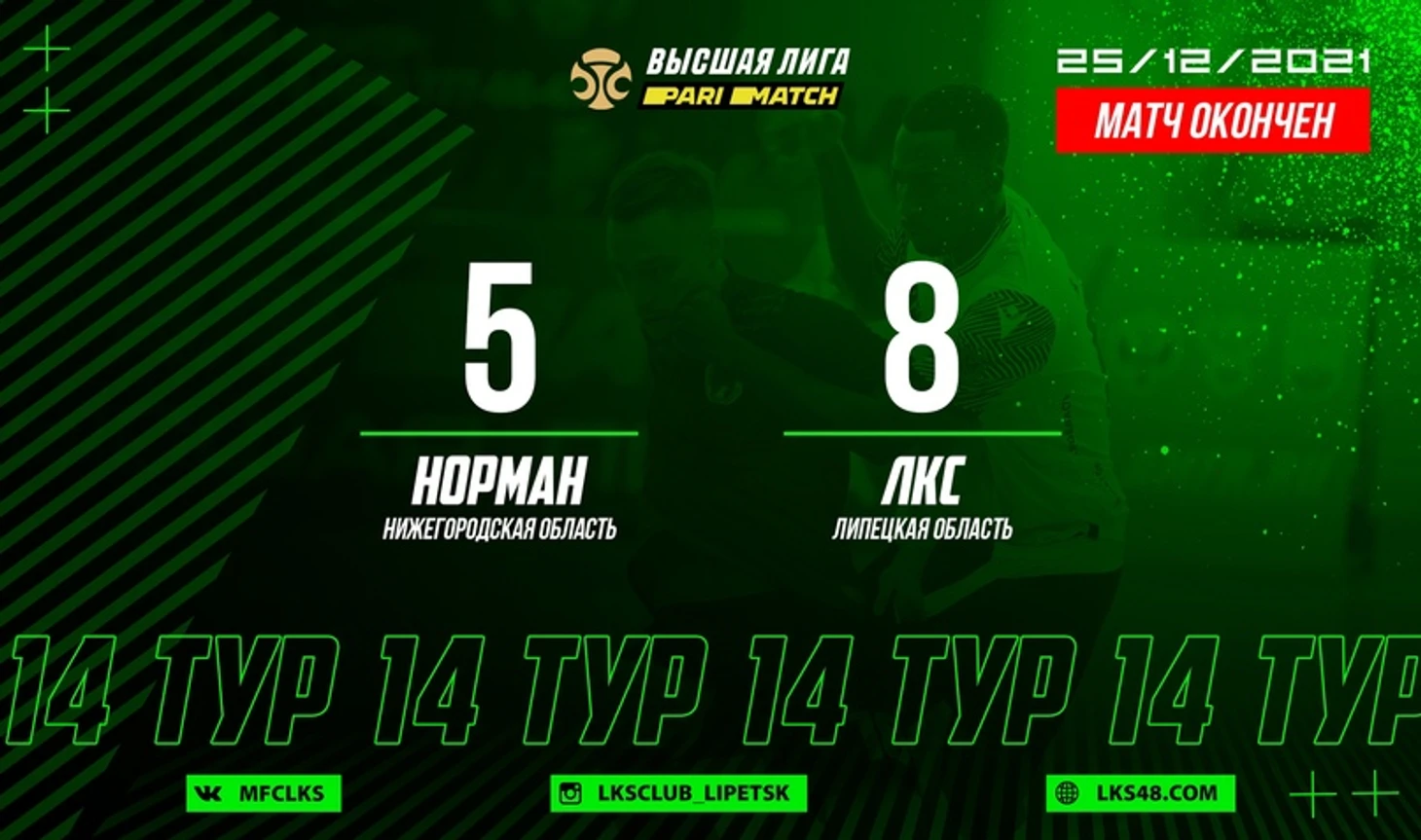 На каникулы липчане уходят на 8-м месте, «Норман» остался 10-м. После новогодних праздников ЛКС предстоит непростая выездная серия, первое испытание – 15 января матч в Реутове с КПРФ-2, 21-го января встреча в Москве со «Спартаком», а затем перелёт в Архангельск.
