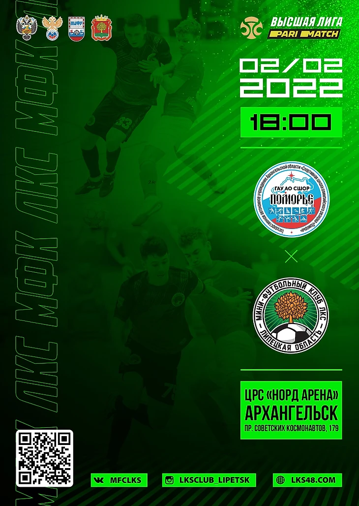 Мини-футбольный клуб ЛКС в 17 туре Париматч-Высшей лиги встретится с МФК "Поморье". Игра в Архангельске по договорённости между командами перенесена с 29 января на 2 февраля. Начало матча в 18:00 (мск).