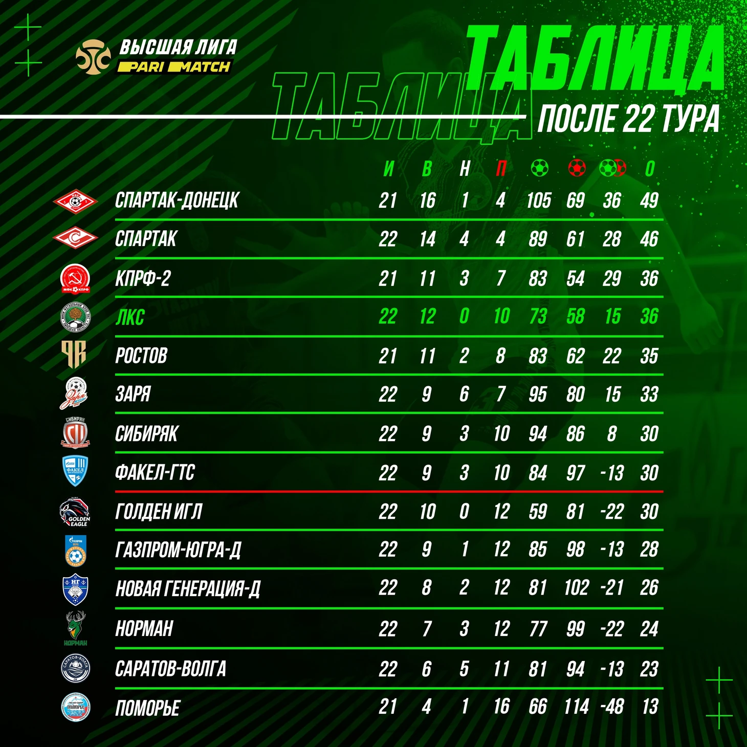 После 22-го тура "Спартак-Донецк" находился на 1-м месте в турнирной таблице, набрав 49 очков и имея игру в запасе. Согласно пункту регламента 9.4., если команда провела в Париматч-Высшей лиге 50 (или более) процентов игр, а затем отказалась от участия в соревнованиях, то в каждом последующем матче данных соревнований ей засчитывается поражение со счётом 0:5.