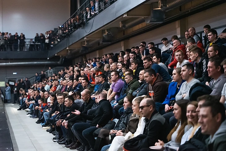 Так вот, прежде всего поразил меня тот ажиотаж, который вызвал этот матч. И это заслуга руководства АМФУР и руководителей спортивного коворка "Арена", где и состоялся этот матч. На трибунах реально было "яблоку негде упасть", и это не смотря на то, что была организована прямая видео-трансляция матча. Не помню такого на играх Чемпионата Удмуртии. Перед матчем состоялось награждение лучших команд и игроков юношеских первенств. А в перерыве встречи организовано выступление группы эстетической гимнастики. Неплохое шоу получилось, даже со световыми эффектами.