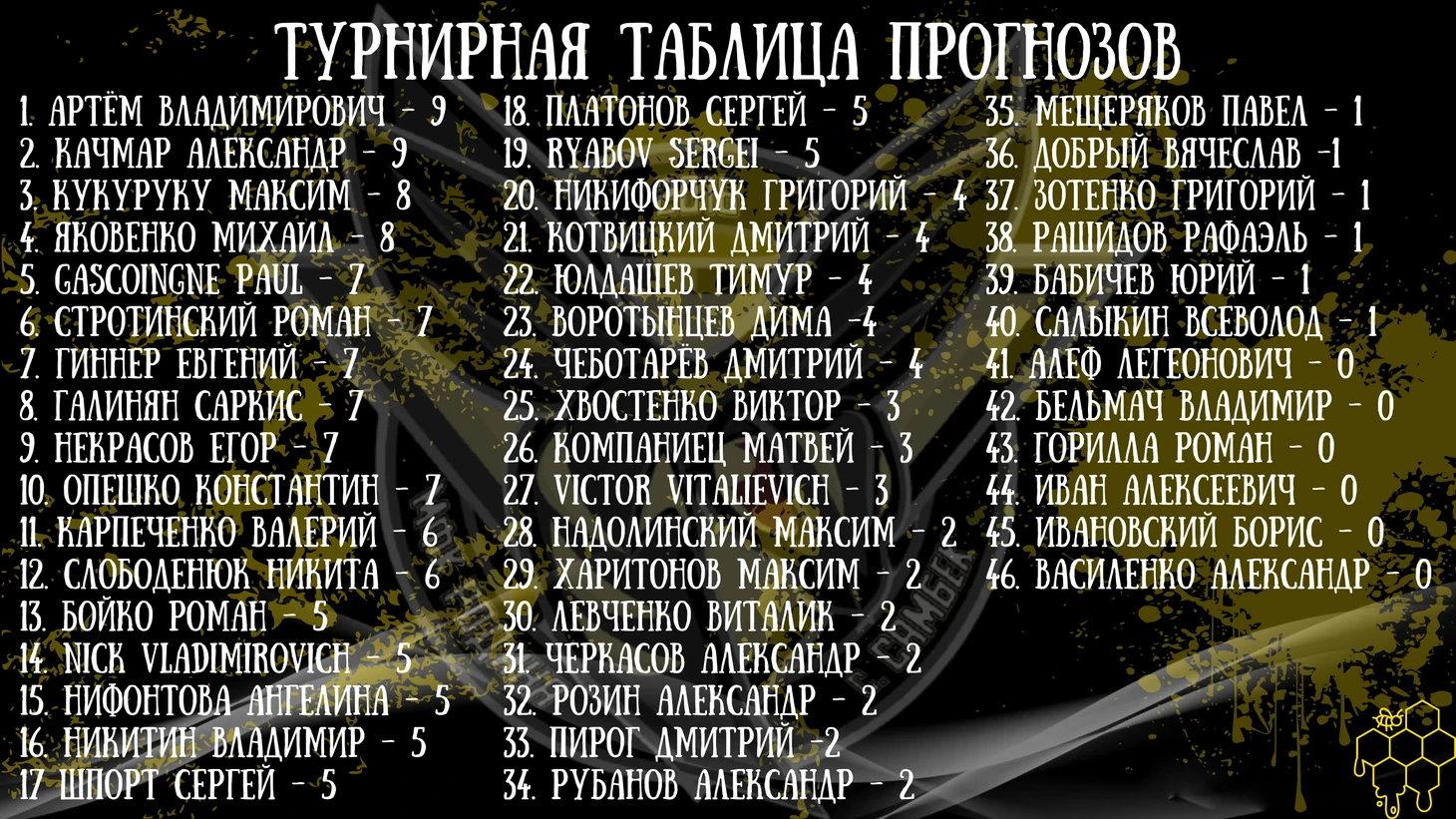 И в завершении. В нашей группе в ВК завершился очередной тур турнира прогнозов 🏆
