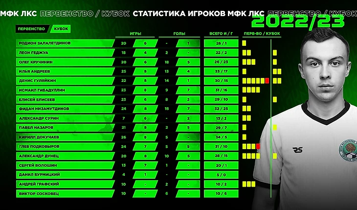 Индивидуальные показатели игроков мини-футбольного клуба ЛКС в сезоне 2022/23