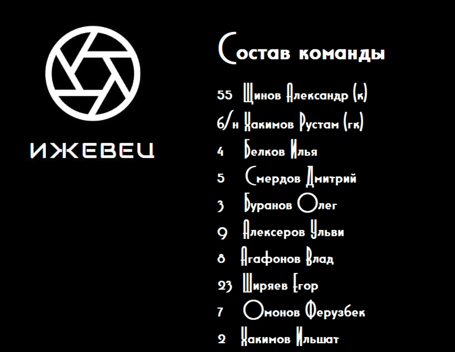 В итоге у нас получилось фактически две четвёрки. По ходу матча были перестроения, но чаще всего играли: Ильшат Хакимов - Олег Буранов - Илья Белков - Дмитрий Смердов в одной четвёрке и Ульви Алексеров - Влад Агафонов - Егор Ширяев - Ферузбек Омонов в другой. Капитан Щинов Александр выходил со второй четвёркой. Ворота защищал Рустам Хакимов.