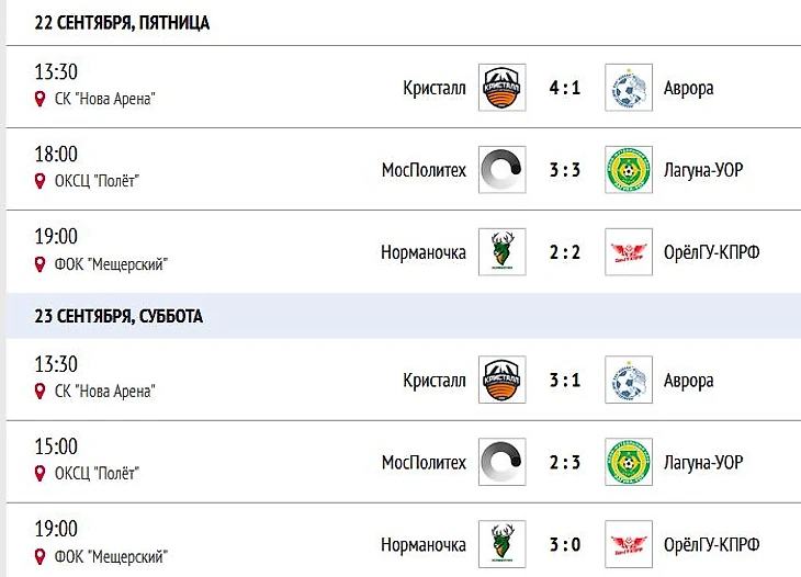 «Норманочка» - «ОрелГУ-КПРФ» 2-2; 3-0. «Орлицы» добиваются важной ничьей на выезде.