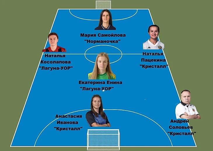 Мнение сугубо субъективное, цель – подогреть интерес к женскому футзалу. Первую четвёрку составили: Вратарь - Мария Петухова (ОрёлГУ-КПРФ), защитник (разыгрывающий) – Александра Самородова (Норманочка), игроки атаки – Дарья Михайлова (Лагуна-УОР), Дарья Башлыкова (ОрёлГУ-КПРФ) и Анастасия Дурандина (Кристалл). Тренер - Максим Сафонов (ОрёлГУ-КПРФ)
