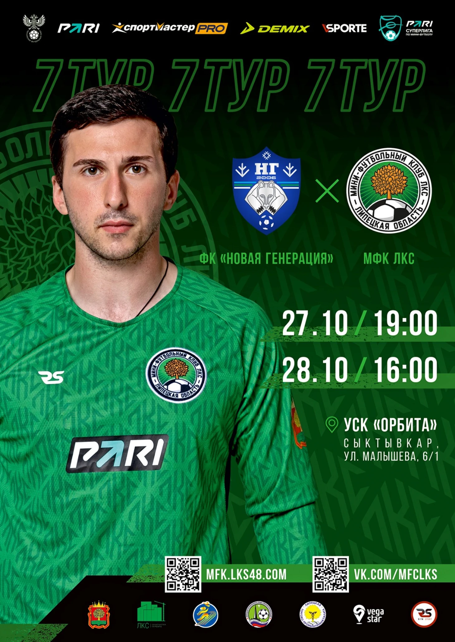 На этой неделе мини-футбольный клуб ЛКС отправится в столицу Республики Коми, где проведёт два матча 7-го тура PARI – Суперлиги чемпионата России по мини-футболу 2023/24 с «Новой генерацией». Игры пройдут 27 и 28 октября (пятница и суббота) в спорткомплексе «Орбита» (Сыктывкар, ул. Малышева, 6/1). Начало – в 19:00 и 16:00.