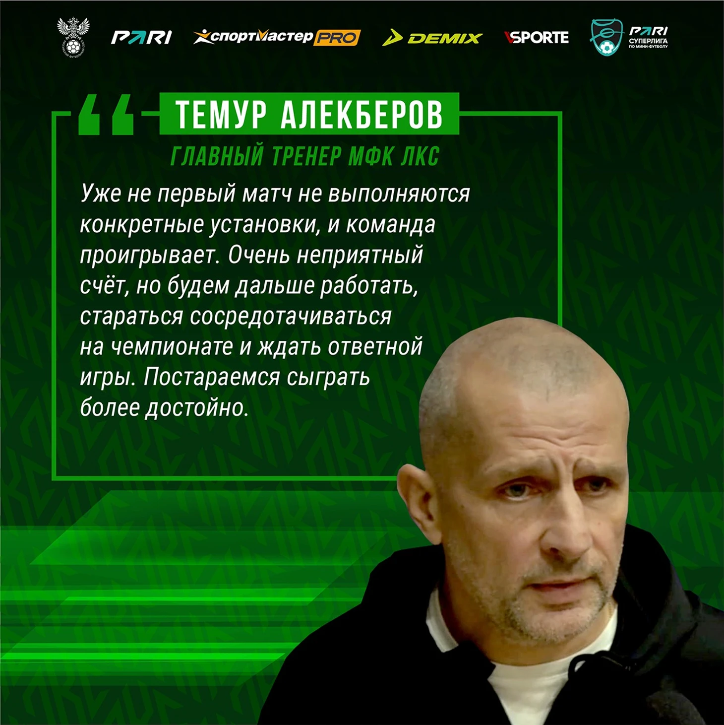 – Я буду краток, счёт говорит сам за себя, положительного отметить нечего, – прокомментировал результат главный тренер ЛКС Темур Алекберов. – Кубок требует дисциплину и самоотдачу. Мы играем, играем, но в какой-то момент принимаем абсолютно глупые решения. Уже не первый матч не выполняются конкретные установки, и команда проигрывает. Очень неприятный счёт, но будем дальше работать, стараться сосредотачиваться на чемпионате и ждать ответной игры. Постараемся сыграть более достойно.