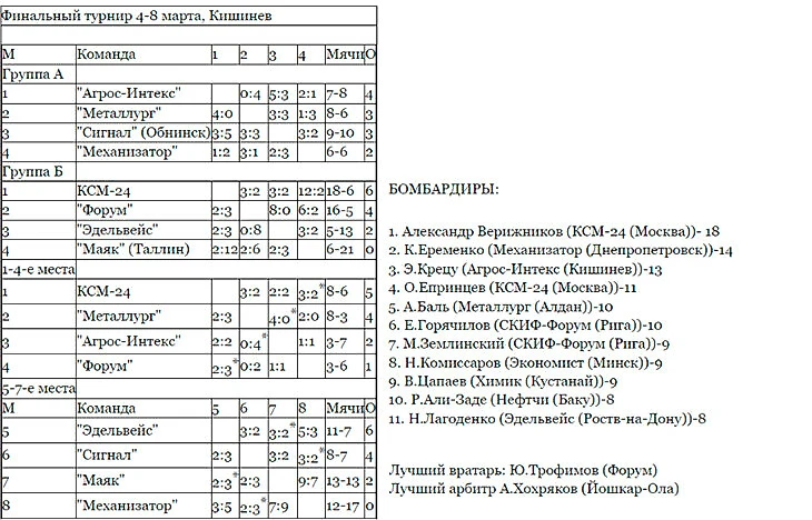 Другим важным событием, конечно, стало проведение первого чемпионата Советского Союза по футзалу. Благодаря ему и удалось быстро собрать боеспособную сборную: все лучшие проявили себя только что.