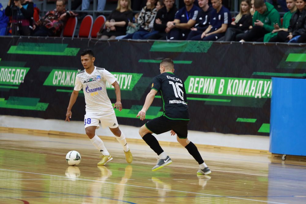 Мини-футбольный клуб ЛКС в 14-м туре принимает в Липецке «Газпром-Югру». В первом матче липчанам не могли помочь дисквалифицированный Леон Геджуа и получивший повреждения Исмаил Гибадуллин. Зато руководство команды успело заявить новичка — Александра Серёгина, который на этой неделе подписал контракт с командой. Счёт был открыт на 3-й минуте, прошла комбинация, которую игроки «Газпром-Югры» уже не раз исполняли в том сезоне, Андрей Афанасьев получил мяч спиной к воротам, развернулся и пробил в дальнюю «девятку». На 9-й минуте мяч после передачи Александра Дунца и касания Янника отскочил к Евгению Мурашову, но тот не попал в створ из убойной позиции. На 10-й минуте гости забили второй мяч, Щимба прошел по флангу и отправил мяч над плечом Залалетдинова в дальний угол, мяч от штанги отлетел в сетку. На перерыв команды ушли при счете 0:2 в пользу «Газпром-Югры».