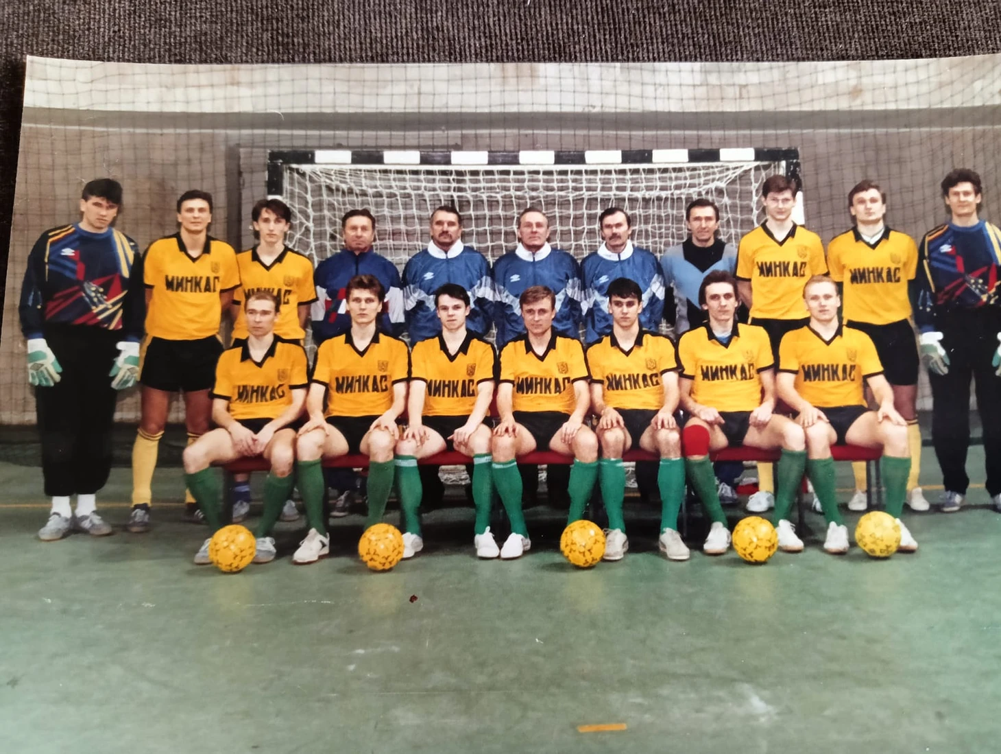 - О «Минкасе» можно говорить долго. Сама команда была интересна своим отношением к делу. Вроде по сравнению с «Диной» «Минкас» не мог похвастаться финансовым благополучием. Тот же Володя Строганов уезжал весной в Финляндию играть в большой футбол, а осенью вновь возвращался на паркет. Ярослав Слепихин, как я уже говорил работал авиадиспетчером. Трое ребят играли параллельно в футзальном «Спартаке». Но была творческая атмосфера. Я уже рассказывал о наших тренировках с Володей Филатовым. У нас никто не стоял над душой. Мы хотели побеждать. Поэтому работали не из под палки, а потому что мы этого хотели. И это всё начиналось с первой лиги. Вышли в высшую начали сезон неудачно. Но в конце команда так разыгралась, что дважды хлопнули «Дину». Сложился уникальный квартет- Лалаев-Моисеев,-Усков- Ерёмин. В начале следующего сезона ушёл Лалаев- команда по прежнему прибавляла. В каждой четвёрке был свой лидер. В первой рулил наш капитан Саша Моисеев, во второй –Лёша Киселёв. Но самое главное мы не отбывали номер на площадке во время тренировок. Да и после. Постоянно работали с видеокассетами своих матчей- в этом плане инкассация нам здорово помогала. Те же Моисеев и Киселёв где-то доставали видеозаписи с чемпионата мира 1992. А общем осваивали новый вид спорта сами. Постоянно на тренировках придумывались новые комбинации игроками- в общем творческая атмосфера. Поэтому любой игрок был по своему неповторим-кроме Моисеева и Киселёва, можно выделить Алексея Ускова, Дмитрия Ерёмина, Валеру Мельникова, Диму Лыкова, Серёгу Василевского. У нас было 2 четвёрки и ещё по 2 дублёра- в основном ребята с футзала.