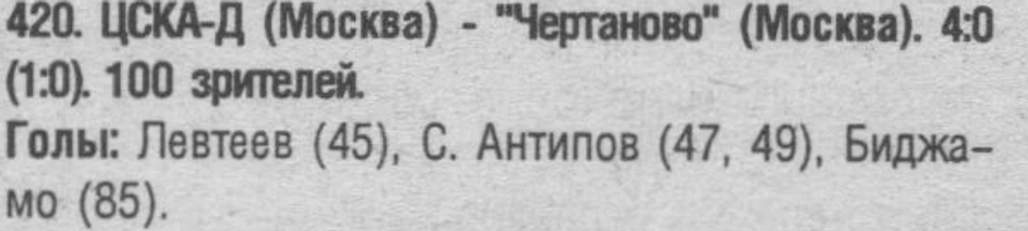 - Сергей: В Уварово команда год просуществовала. Пришлось обратно в Москву возвращаться. И тут последовало предложение из ЦСКА. Понятно, что попасть в основу с третьего дивизиона шансов было мало. Так что приходилось играть в третьей лиге. Тогда же чемпионат среди дублирующих составов не проводился Но в дубле прошли хорошую школу у Юрия Николаевича Аджема и Виктор Андреевич Колядко. Мы стали лидерами в дубле. Что называется находились под основой. Постоянно находились в числе запасных, если матчи не совпадали. Но опять же из-за того, что дубль и основа играли в разных лигах не всегда могли тренироваться с основой. Хотя наша зона была чисто московская. Но банда в ЦСКА тогда была будь здоров. Только имена в полузащите Радимов, Семак, Хохлов, Минько, чуть позже Гашкин. Поэтому пробиться было сложно. Как я говорил мы были под основой, но в конце 96 года в ЦСКА произошёл конфликт между футбольным клубом ЦСКА и спортивным клубом ЦСКА. Дело в том, что главный тренер Алесандр Тарханов был ещё и президентом клуба. Зимой спортивный клуб окончательно взял власть в ФК. Но Тарханов мериться с этим не стал. И с большинством футболистом перешёл в «Торпедо-Лужники».