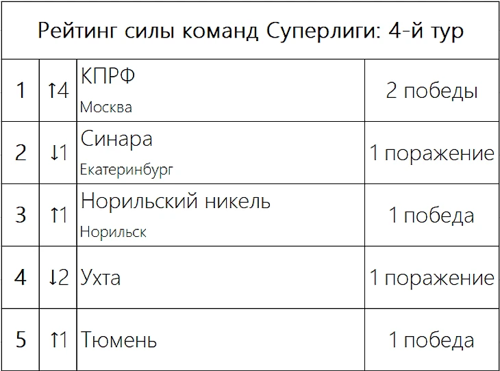 Состоялись матчи 4-го тура Суперлиги, а это значит – пришла пора обновить Рейтинг силы команд. Давайте посмотрим, к каким изменениям привели результаты. По традиции представляем топ-5.