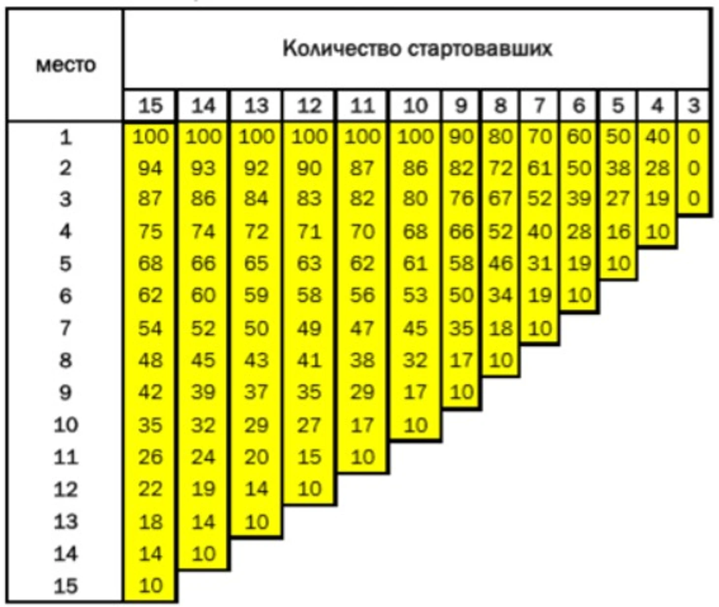 *Все участники свыше 15-ого места получают 5 очков за участие в соревновании.
